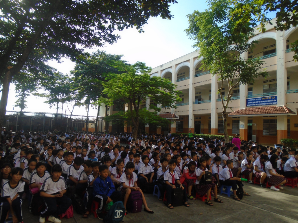 Sau khi làm lễ chào cờ, các em được nghe cô Đinh Kim Quy - Hiệu trưởng nhà trường nói về truyền thống nhà trường và có những lời dặn dò, động viên các em trong năm học sắp tới.